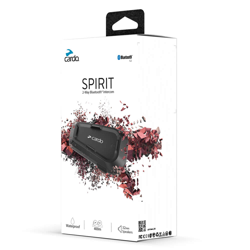 interkom motocyklowy, Cardo Spirit, interkom do kasku, Bluetooth 5.2, zasięg 400 m, wodoodporny interkom, Cardo Spirit Duo.
