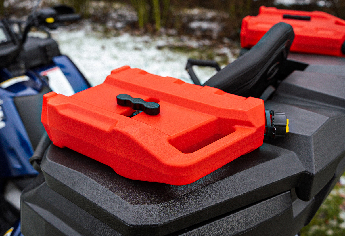 Bardzo duży, wodoodporny kufer ATV do pojazdów użytkowych. Wykonane z mocnego, odpornego na uderzenia polietylenu o wysokiej gęstości, ten box pomieści wszystko, czego potrzebujesz w podróży, pracy, wędkowaniu lub polowaniu. Pokrywa zamykana jest na dwa zamykane zatrzaski.