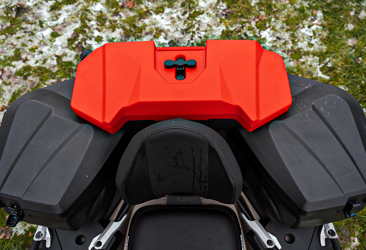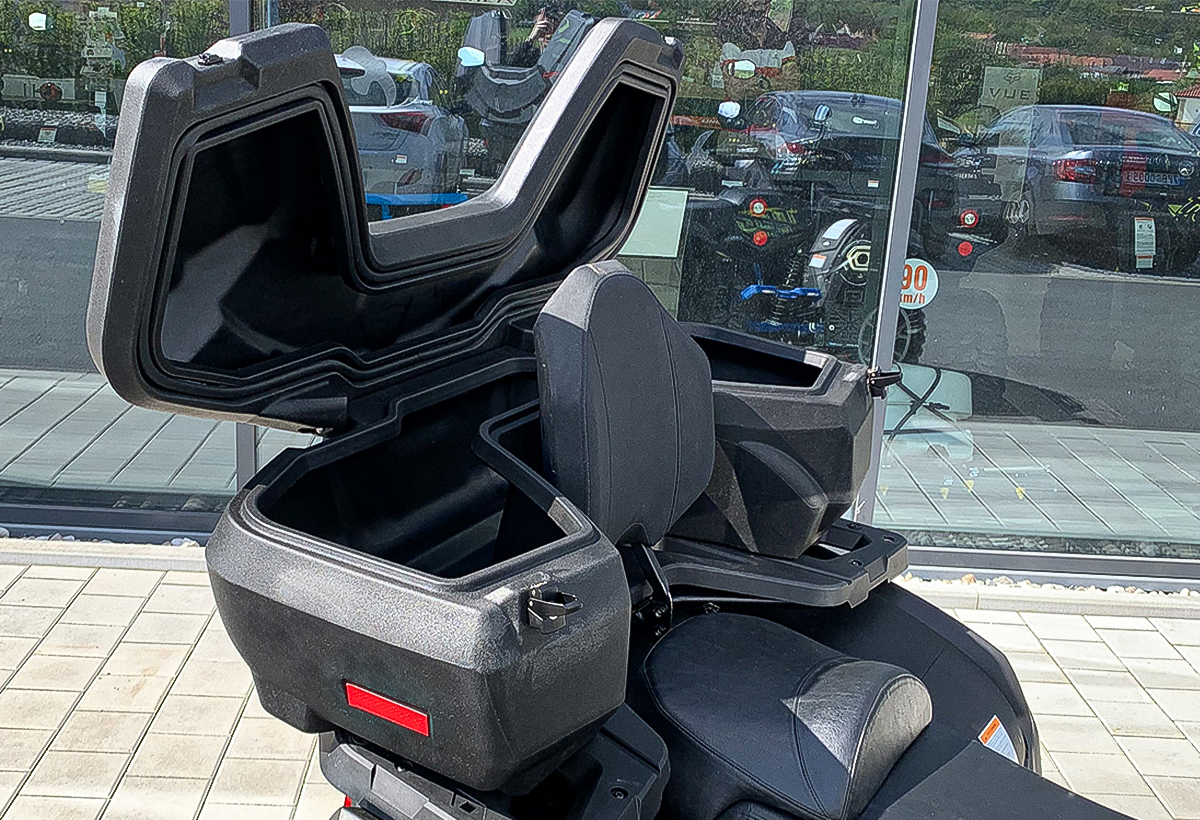 - Duża komora do przechowywania 115 litrów z łatwością zmieści dwa kaski na całą twarz i wiele innych udogodnień