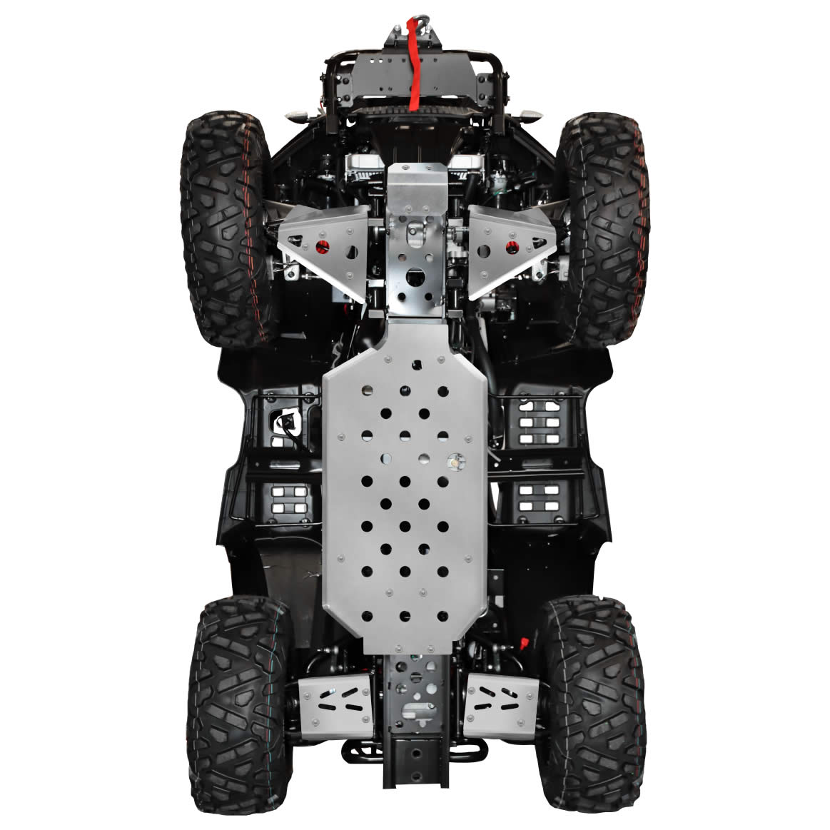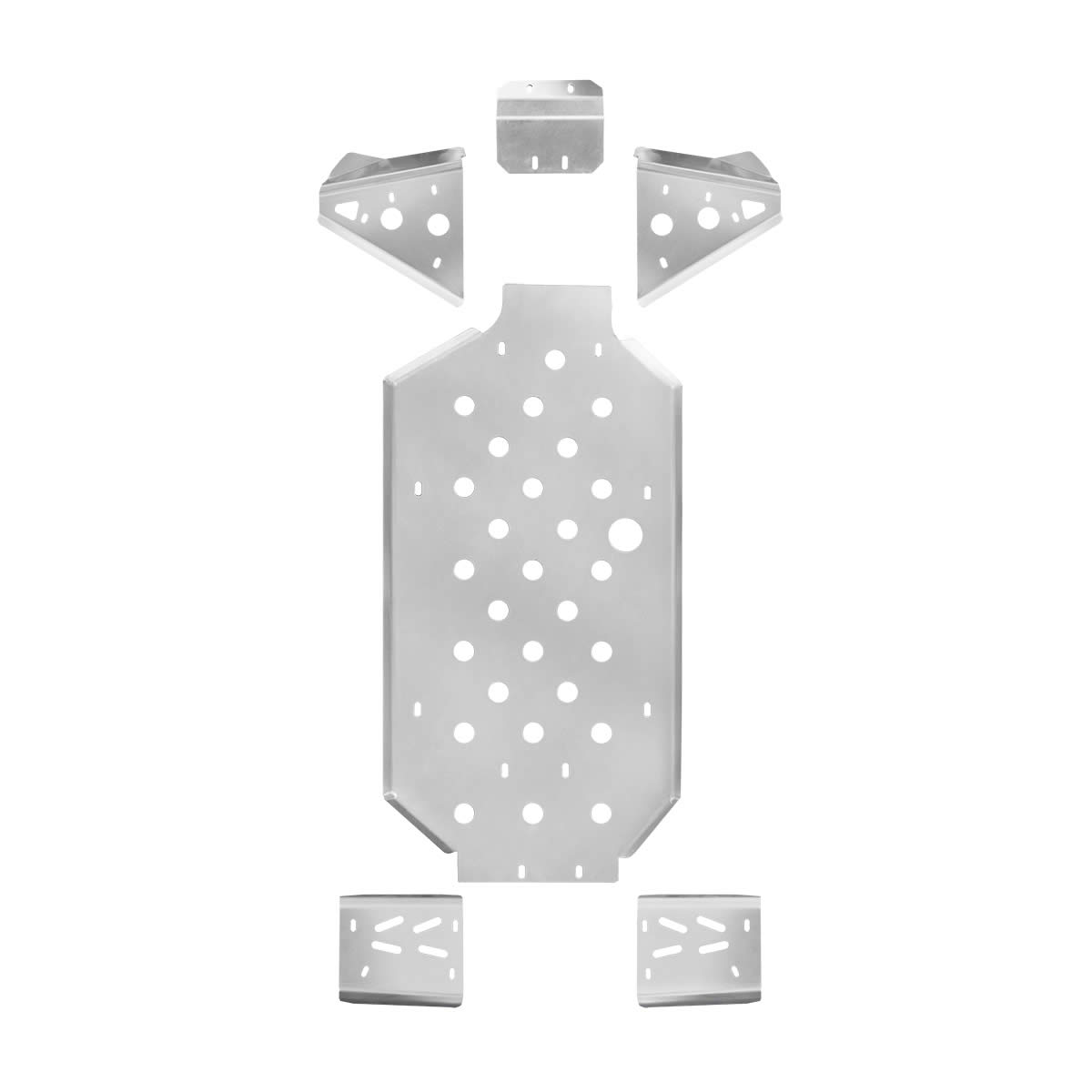 Kompletny zestaw osłon podwozia, zabezpiecza całe podwozie oraz wahacze pojazdu przed głazami i kamieniami. Wytrzymałe i lekkie 4 mm aluminium, w zestawie osłona całej ramy z osłoną podłogi, osłony przednich i tylnych wahaczy, przednia i tylna płyta osłaniająca. Otwory dostępowe i nacięcia do łatwego serwisowania pojazdu.
