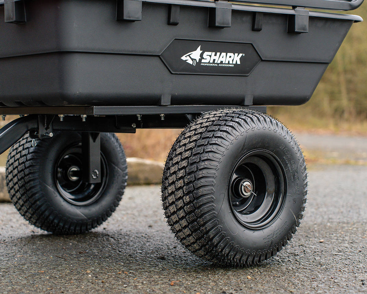 Wielofunkcyjna przyczepa ATV z wywrotką / ciągnik ogrodowy jest idealna do ogrodu, gospodarstwa, podwórek, obszarów roboczych na zewnątrz, czyszczenia szlaków i gruzu, polowań i nie tylko. Przyczepa mocowana jest do ATV, UTV lub ciągników ogrodowych w celu przewożenia żwiru, drewna, gliny, gruzu i innych ładunków o wadze do 300 kg. Jej konstrukcja wywrotki ułatwia wysypywanie zawartości przyczepy dokładnie tam, gdzie jej potrzebujesz. Szerokie opony są idealne na miękkim podłożu i nie niszczą powierzchni. Przyczepa jest wyposażona w standardowy hak holowniczy z zaczepem 2″ (50 mm).