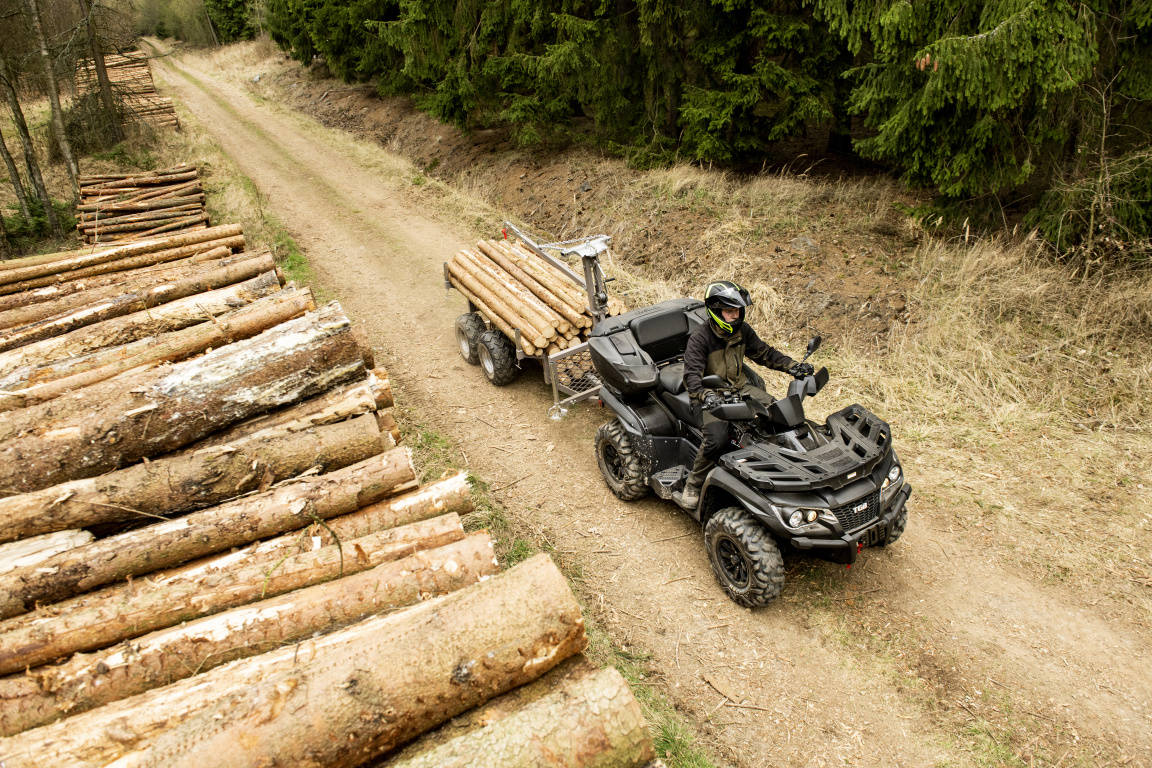 Profesjonalna przyczepka o dużej ładowności jest najbardziej wszechstronną przyczepą do użytku z pojazdami typu ATV i UTV. Może być również holowana za pomocą dowolnego pojazdu terenowego wyposażonego w kulę zaczepową 50 mm / 2”. Koła tandemowe „przechodzą” prawie po każdej przeszkodzie i dają przyczepie doskonałe możliwości jezdne umożliwiające łatwą nawigację po pniach i rowach. Cztery wyjątkowo szerokie i niskociśnieniowe opony terenowe nie uszkadzają terenu. Panele końcowe można łatwo zdjąć, a podwozie przekształcić w podwozie do transportu dłuższych ładunków takich jak kłody, krzaki lub tarcica. Stabilizatory boczne utrzymują przyczepę stabilną podczas załadunku lub rozładunku za pomocą podnośników.