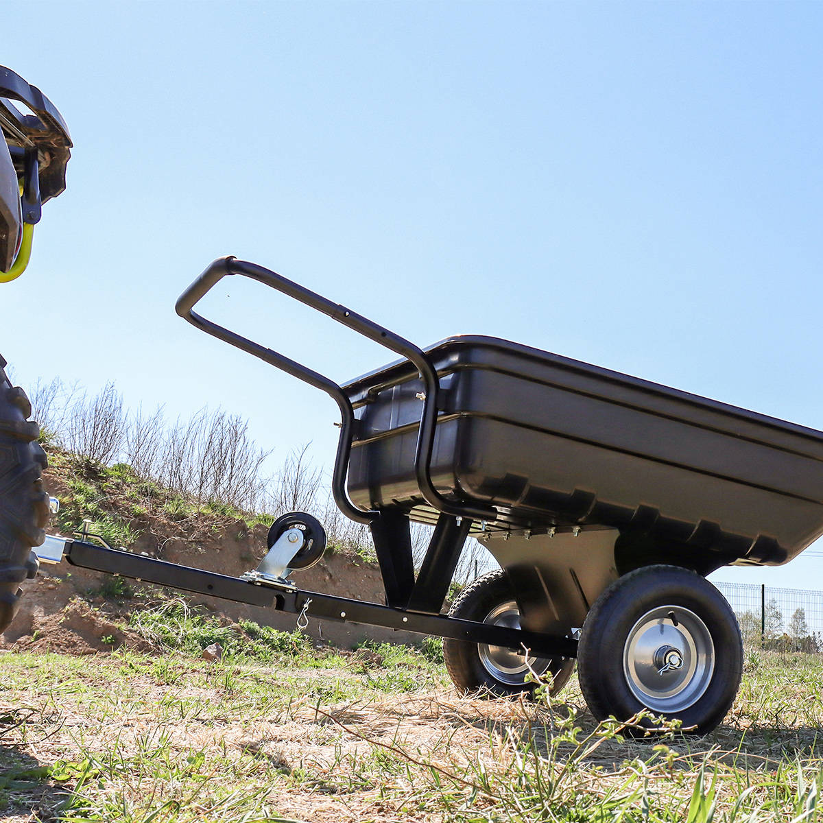 Dwa wózki w jednym: uniwersalna przyczepa do holowania za pojazdami ATV może być łatwo przekształcona w taczkę ogrodową, ładowność: 150 kg, przechylny pojemnik, trzecie koło na składanym drążku, wytrzymały pojemnik wykonany z polietylenu, wytrzymała rama ze stali, lakierowana proszkowo, waga – tylko 35 kg, wymiary: 157 x 93 x 72 cm, opony: 16 x 4-8.
