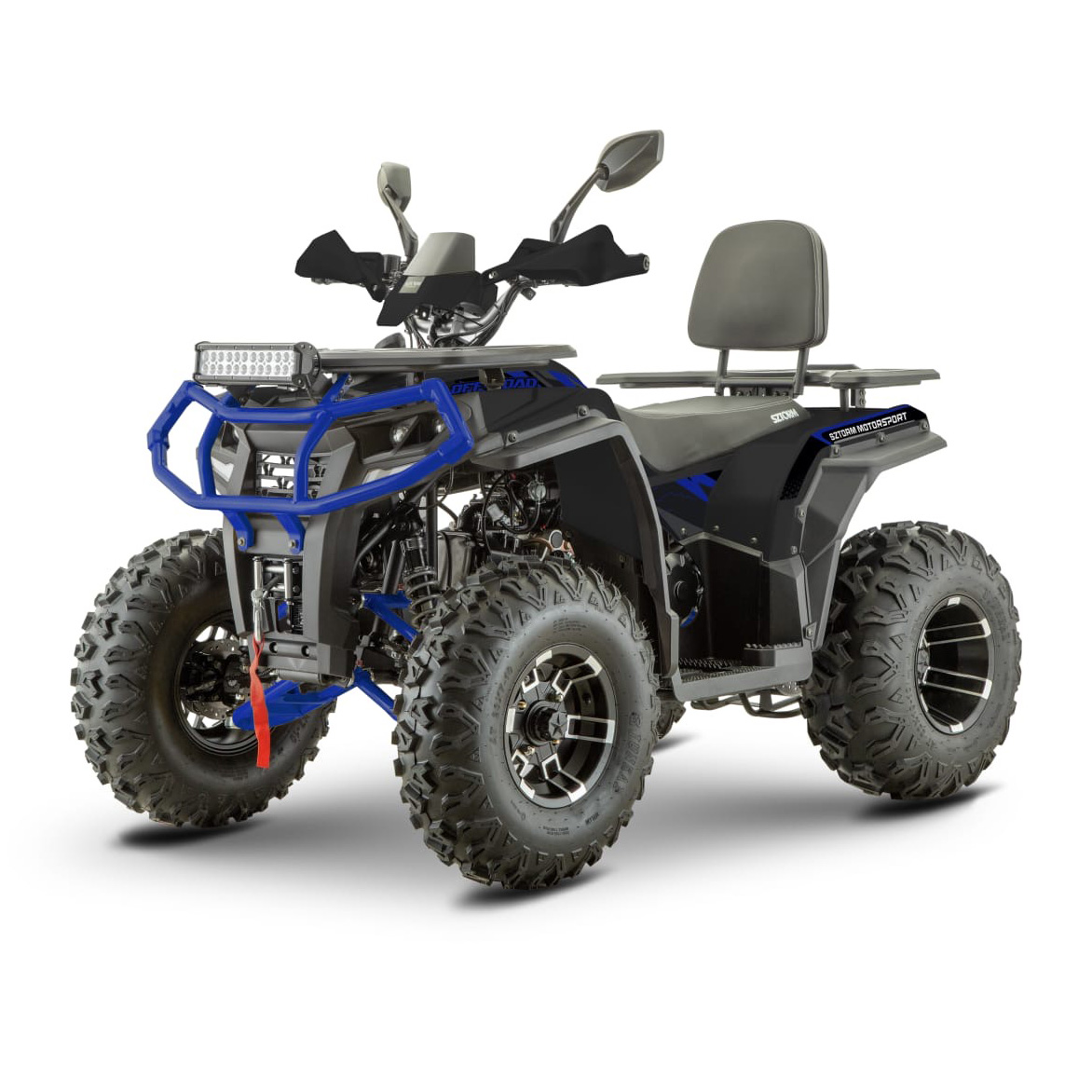 Na pokładzie znajduje się m.in. elektryczny rozruch START-STOP, cyfrowy licznik, hydrauliczne hamulce tarczowe przód i tył, stalowe felgi z oponami typu Bighorn 10”, osłony dłoni, pełne oświetlenie LED, stalowy bak, komfortowe oparcie, lusterka oraz przedni bumper malowany proszkowo. Całość oparta jest na spawanej maszynowo ramie z regulowanymi amortyzatorami i kulowymi wahaczami OFF-ROAD.