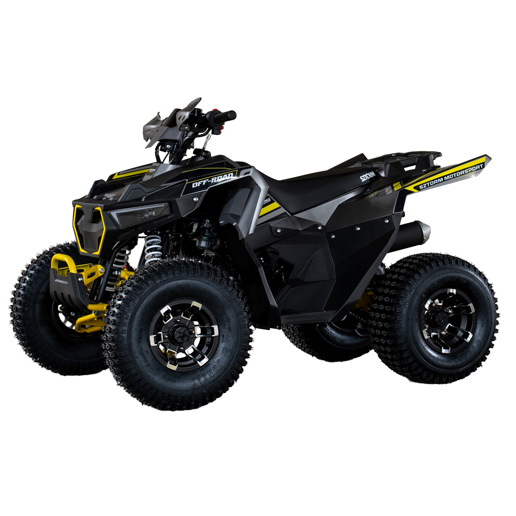 SZTORM VIKING 125 to bezkompromisowy quad stworzony z myślą o wymagającym terenie. Wyposażony w cyfrowy licznik, pełne oświetlenie FULL-LED i solidny stalowy bak, łączy nowoczesność z trwałością. Wzmacniane amortyzatory, hydrauliczne hamulce tarczowe i agresywne opony typu Bighorn zapewniają maksymalną kontrolę i przyczepność w każdych warunkach. Off-roadowe wahacze, osłony dłoni i spawana maszynowo rama gwarantują wytrzymałość, na której możesz polegać. Viking 125 – stworzony do jazdy, nie do oglądania.