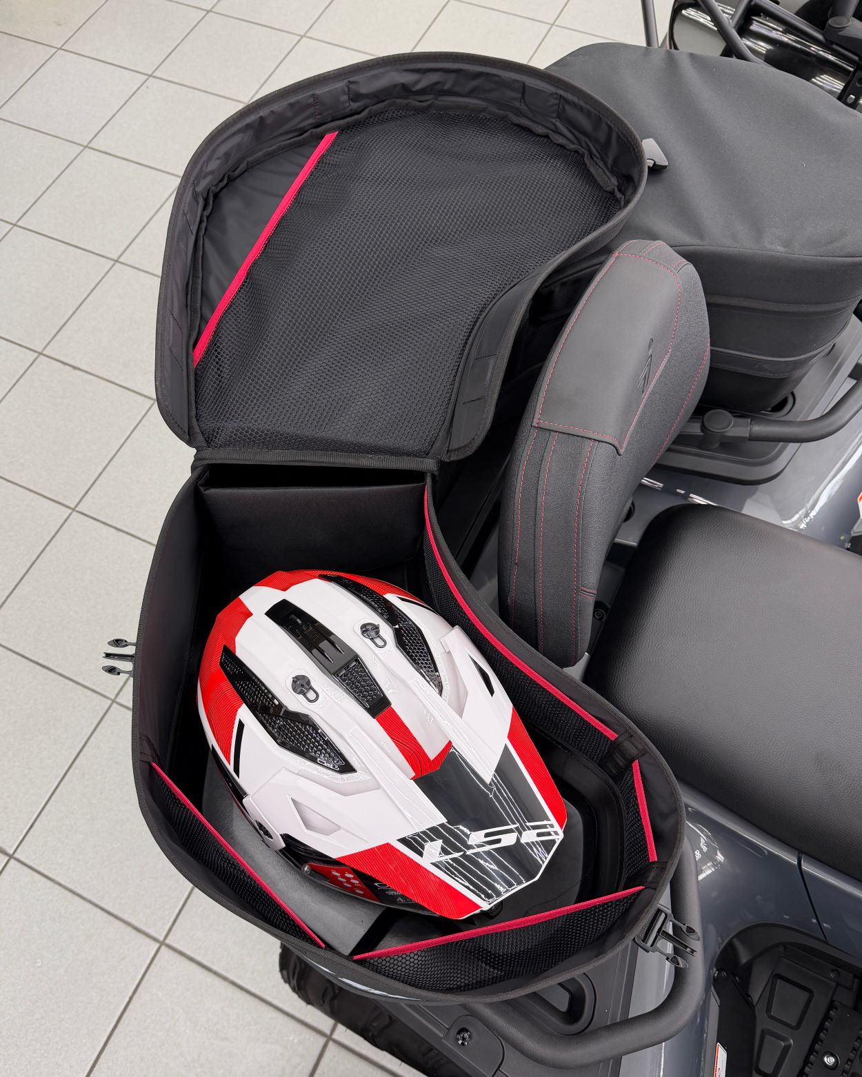 Pojemność 80 litrów sprawia, że torba bez problemu pomieści dwa kaski w rozmiarze XL lub pełny zestaw akcesoriów ATV. Możliwość otwierania torby w całości lub niezależnie z lewej i prawej strony zapewnia szybki dostęp do zawartości. Wewnętrzne siatki oraz dodatkowe przegrody ułatwiają organizację mniejszych przedmiotów.