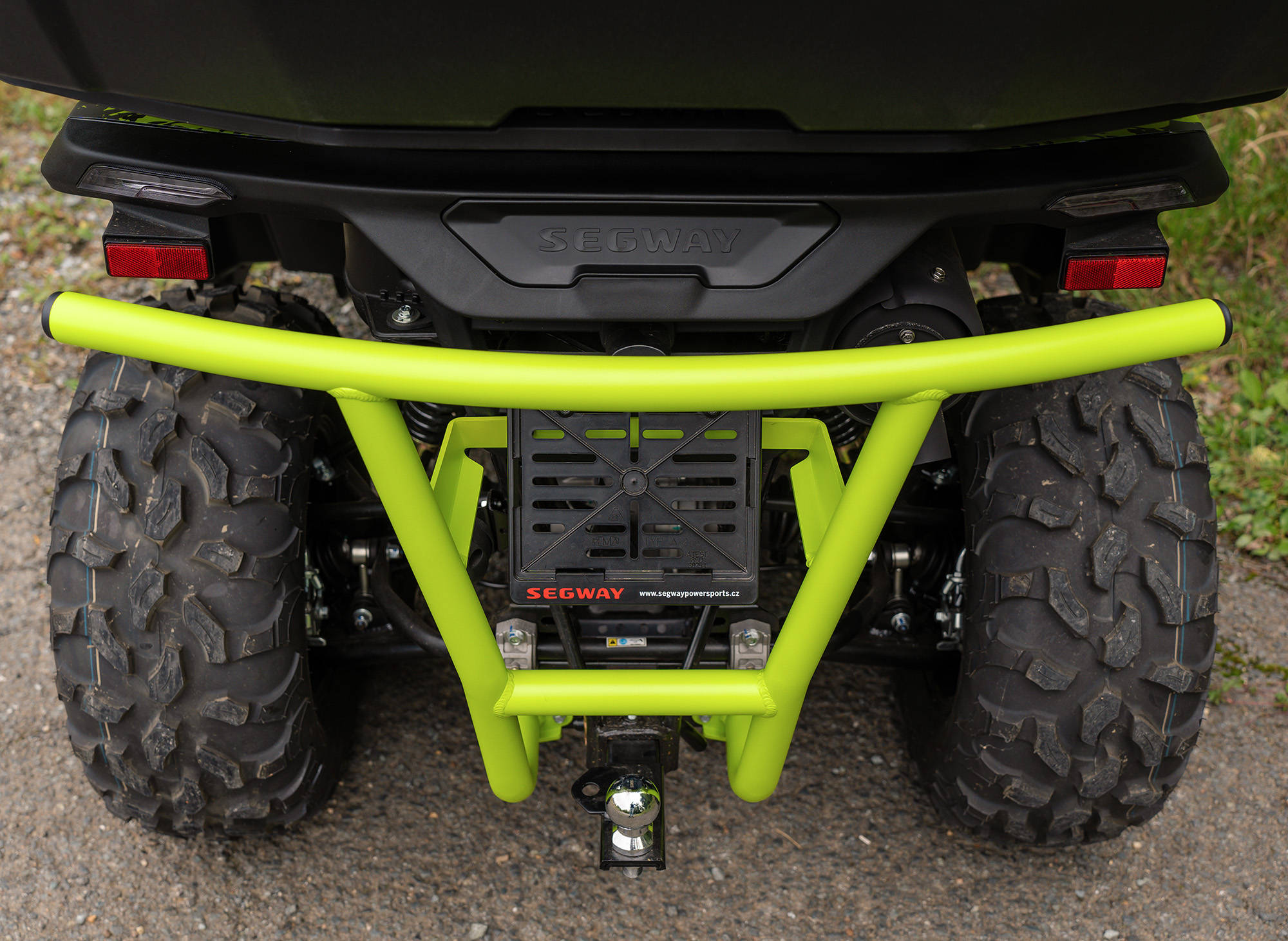 Solidny, zielony tylny zderzak z utwardzonego aluminium 6060-T5 dla quada SEGWAY AT5. Wymiary: O40x2.5mm. Łatwy montaż.